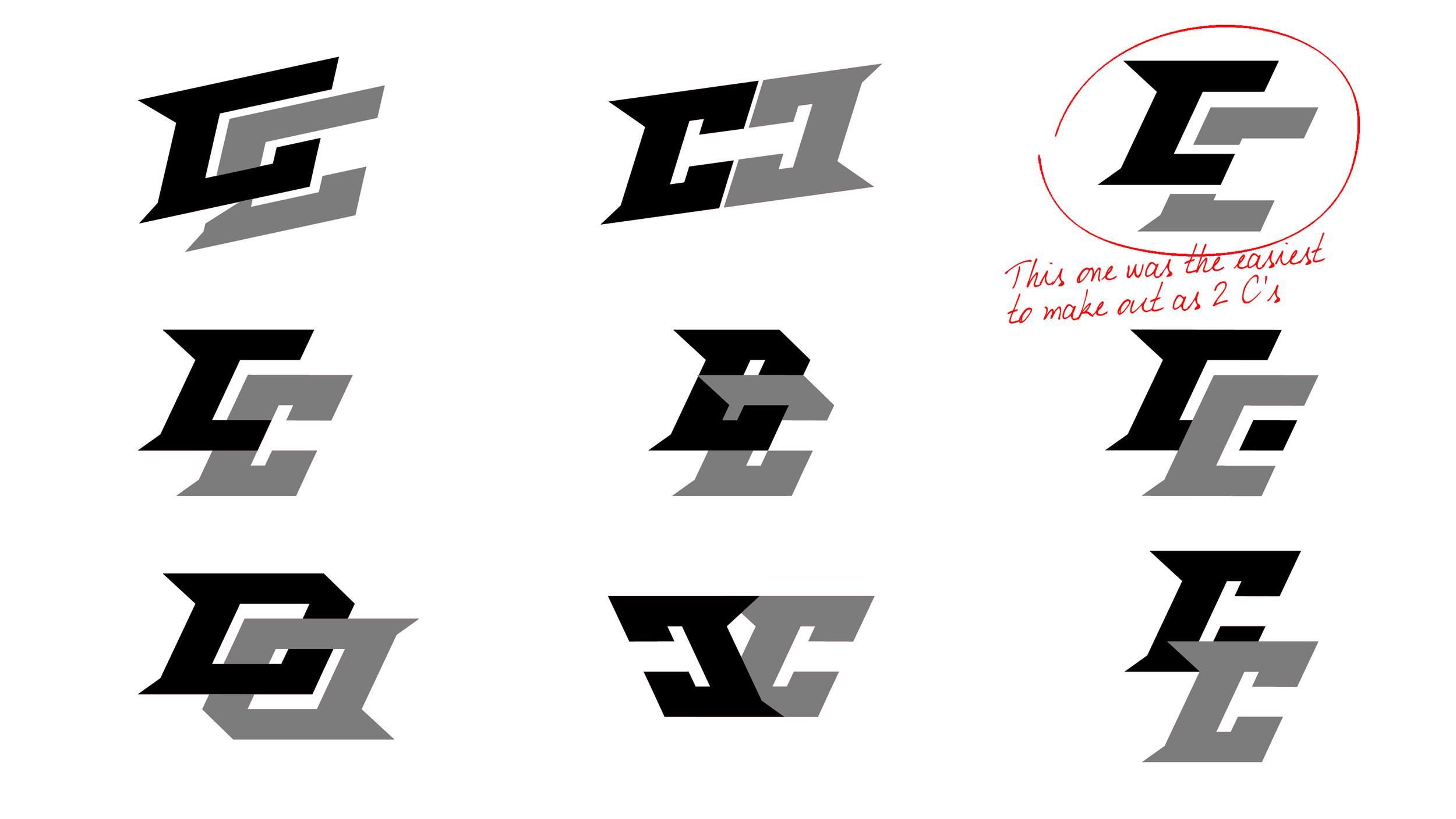 The dual C mark went through a lot of exploration before landing on the final version. I tested different shapes, angles, and weights to find something that felt fast and energetic without losing clarity. The goal was to create a symbol that worked on its own, stayed readable at any size, and still carried the attitude of the team. The final mark hits that balance and gives the Corsairs a strong, versatile identity piece.