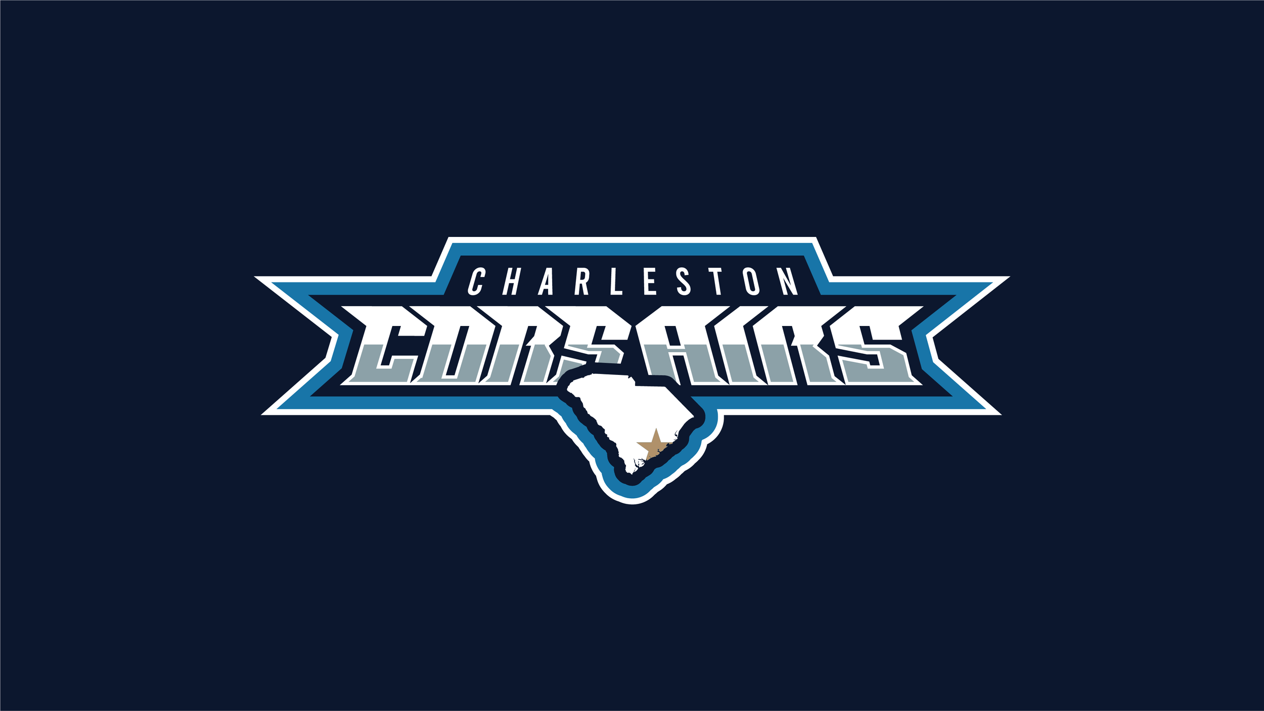 This step was about building out the full team identity by combining the mark with type and supporting elements. I explored how the pirate icon could sit alongside “Charleston Corsairs” in a way that felt balanced and strong. Adding the South Carolina state shape and a star near Charleston helped ground the logo in its home state. It was a way to show pride, location, and team identity all in one unified lockup.