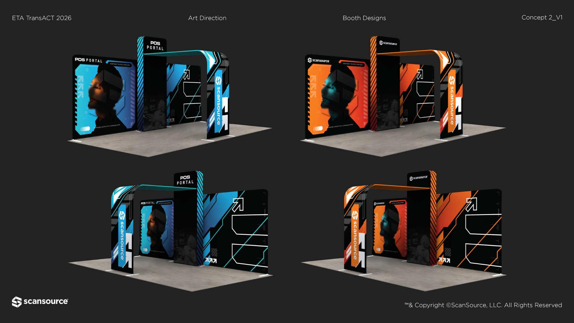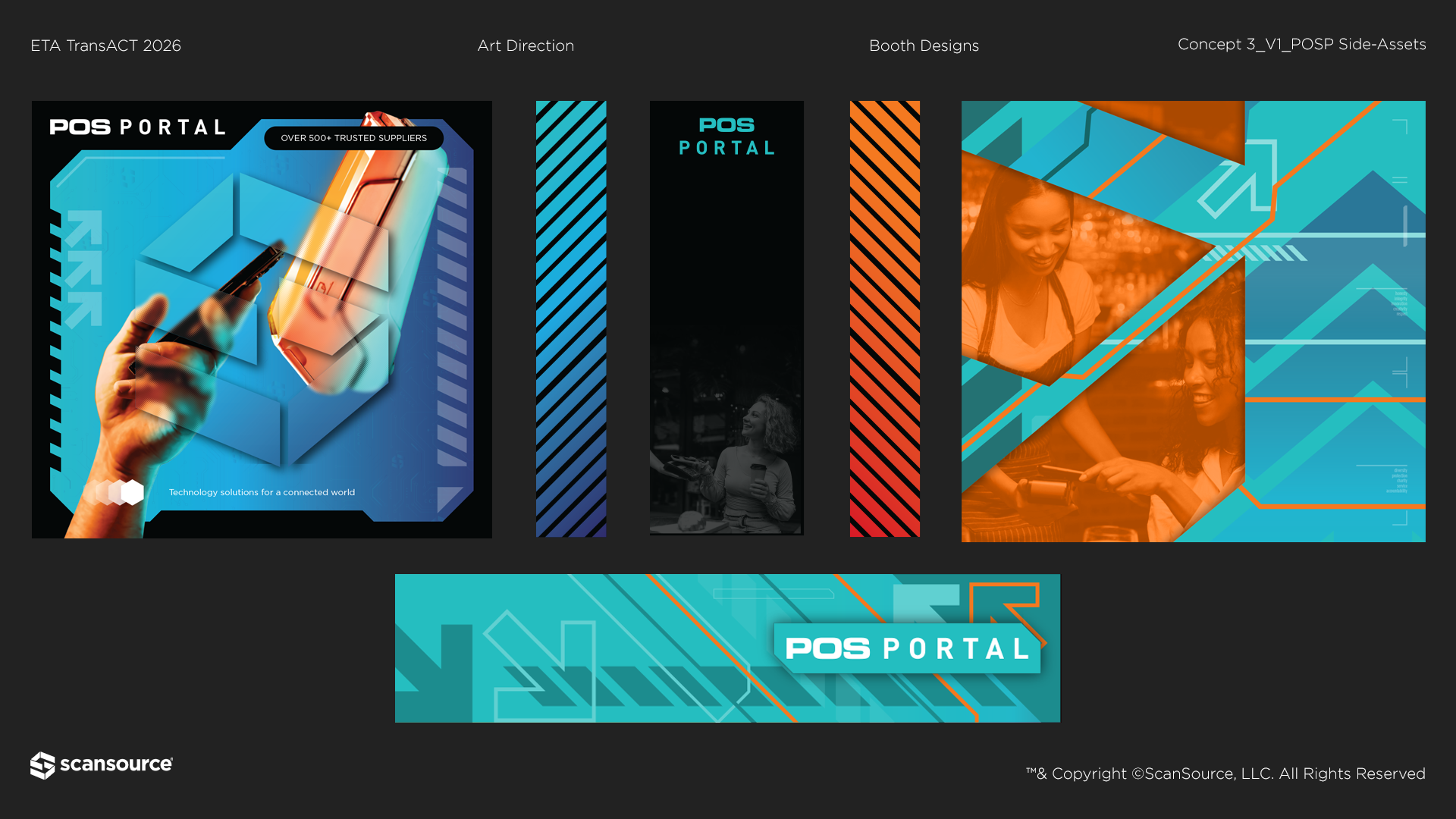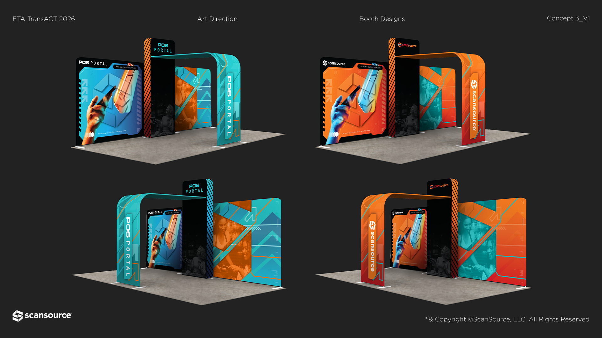 This direction merges system and experience into one language. The high-tech foundation is softened with glass-like layers and transparency, adding depth and a more premium, refined feel. The Creation of Adam reference returns as a subtle cue for connection, integrated into the broader flow rather than standing alone. ScanSource elements are woven throughout, bringing both brands closer together. Not fully blended, but clearly converging.
