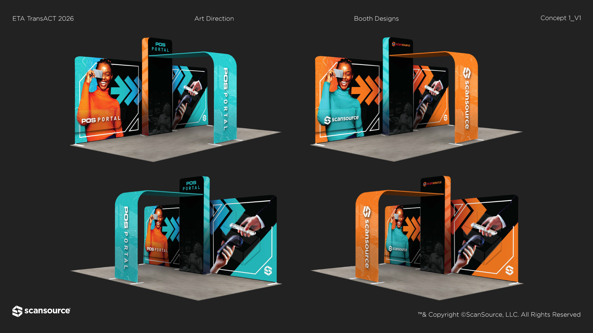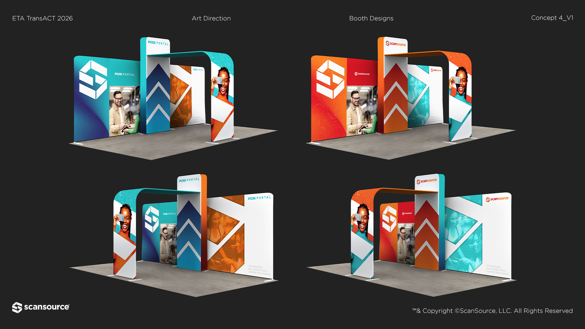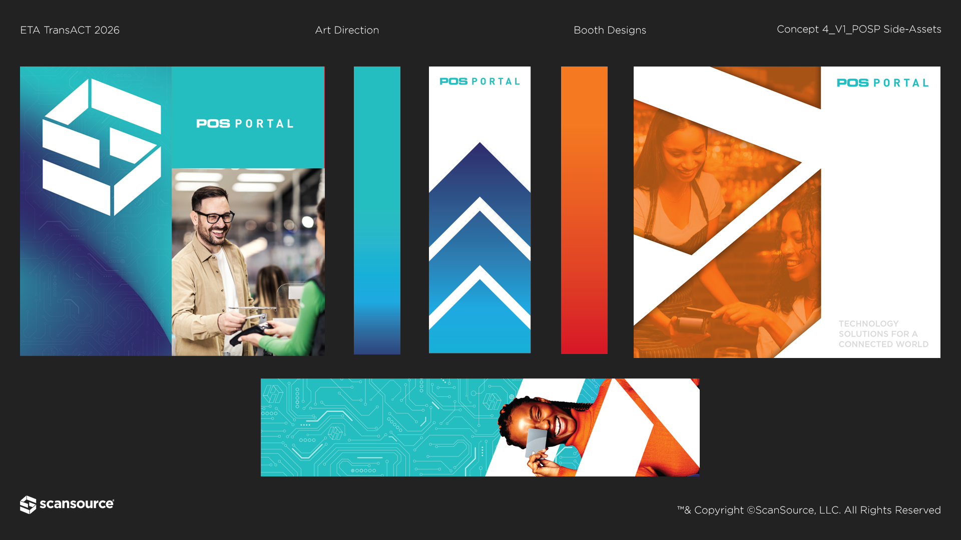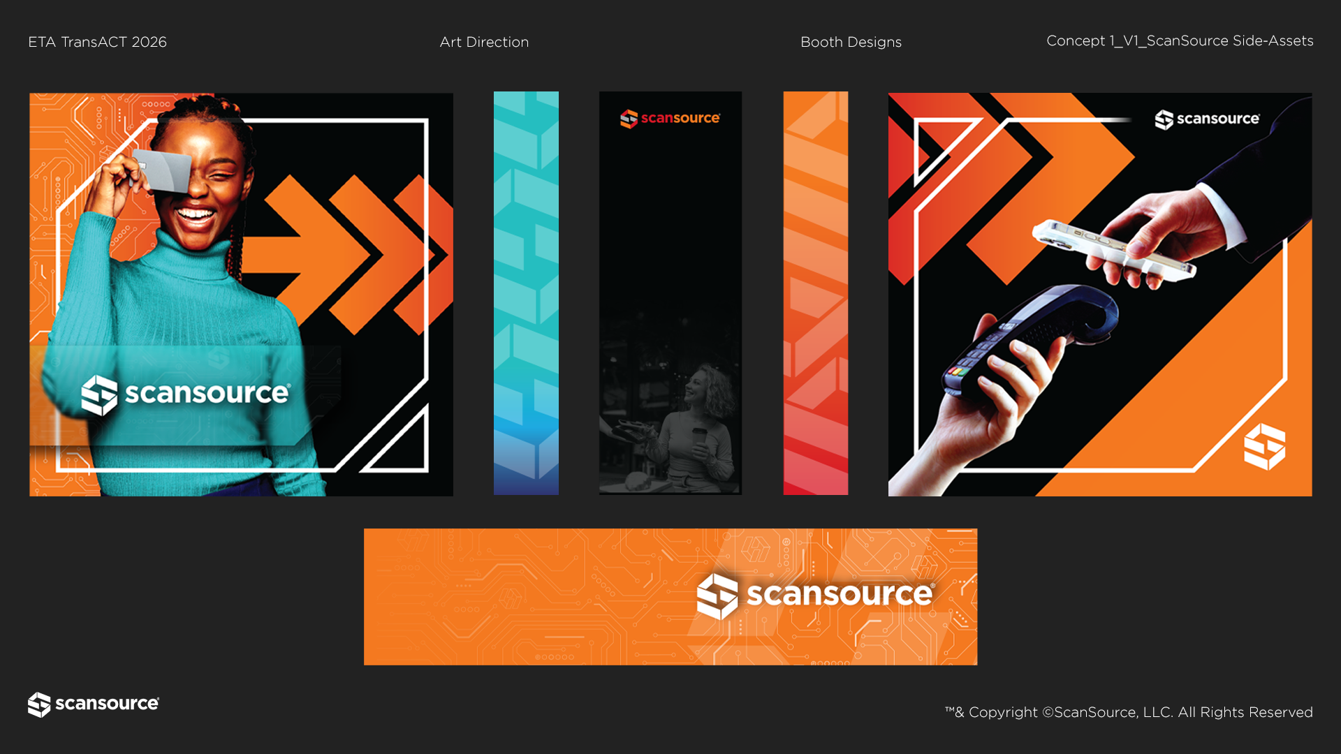 This direction merges system and experience into one language. The high-tech foundation is softened with glass-like layers and transparency, adding depth and a more premium, refined feel. The Creation of Adam reference returns as a subtle cue for connection, integrated into the broader flow rather than standing alone. ScanSource elements are woven throughout, bringing both brands closer together. Not fully blended, but clearly converging.