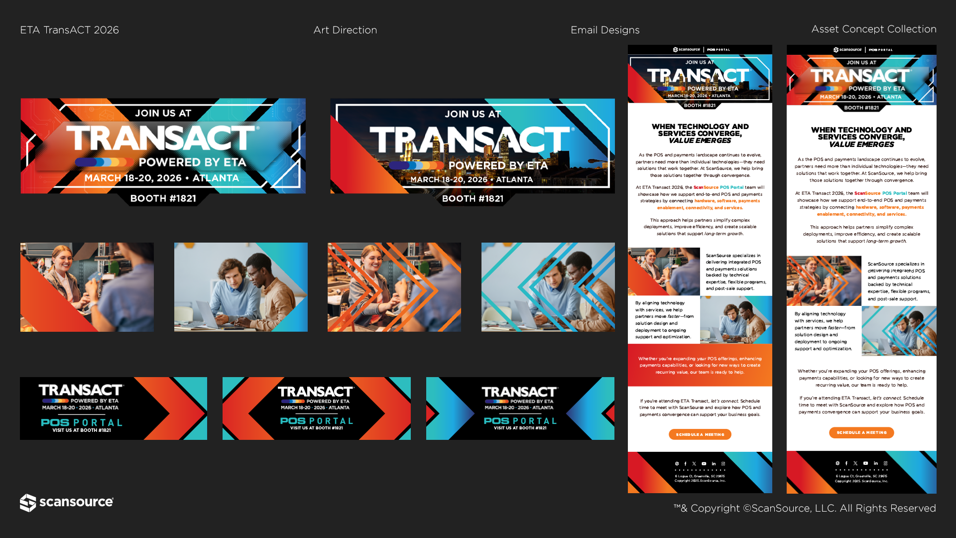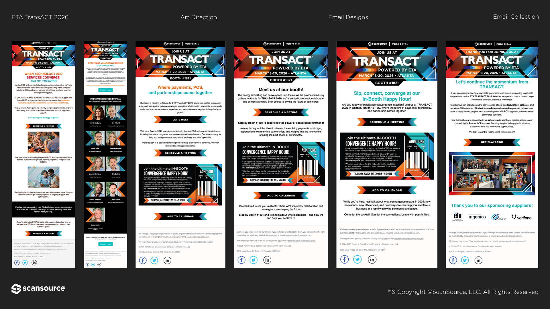 The booth set the foundation, but the system extended far beyond it. That initial direction became the framework for the full campaign. Email, landing pages, and social were all built off the same visual and conceptual language, then shaped through collaboration with the broader marketing team. Copywriters refined the message, the digital team translated it across platforms, and other designers expanded and adapted the system. What started as a single concept evolved into a unified campaign. Not owned by one person, but carried and strengthened by the team.